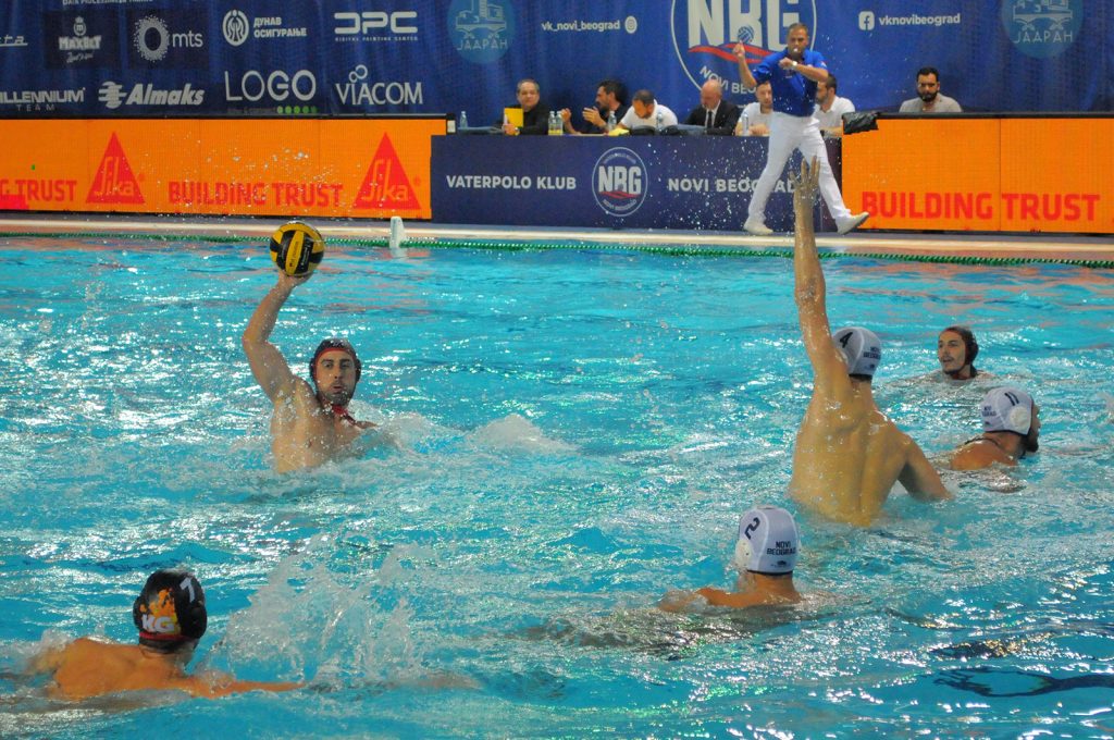 Novobeograđani su dobro otvorili utakmicu i poveli sa 3:0, nakon dva gola Mandića iz peteraca i jednog Granadosa, ali je Radnički ubrzo uhvatio priključak preko Lukića. Razlika se potom vrtela oko dva-tri gola, a Kragujevčani su sredinom druge deonice prišli i na „minus jedan“ nakon dva vezana gola Ukropine (6:5). Najbolju priliku za izjednačenje imali su dva napada kasnije, kada nisu iskoristili igrača više, što je protivnik kaznio i ponovo pobegao na tri gola (9:6).