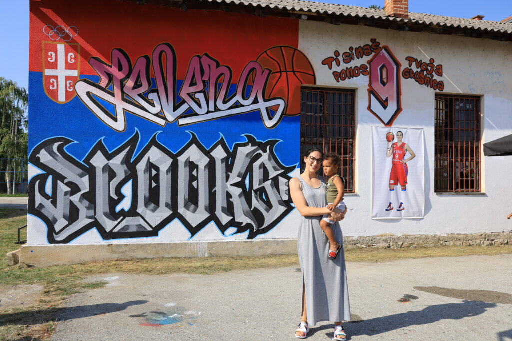 Žitelji kragujevačkog naselja Grošnica se nisu obrukali. Naprotiv. Slavnoj košarkašici i kapitenu naše reprezentacije Jeleni Bruks pripremili su doček iznenađenja u njenom naselju. „Ti si naš ponos – tvoja Grošnica” stoji na transparentu i muralu koji je na zadnjem zidu Mesne zajednice i grošničkog Doma kulture oslikao grafiti umetnik Aleksandar Stevanović.