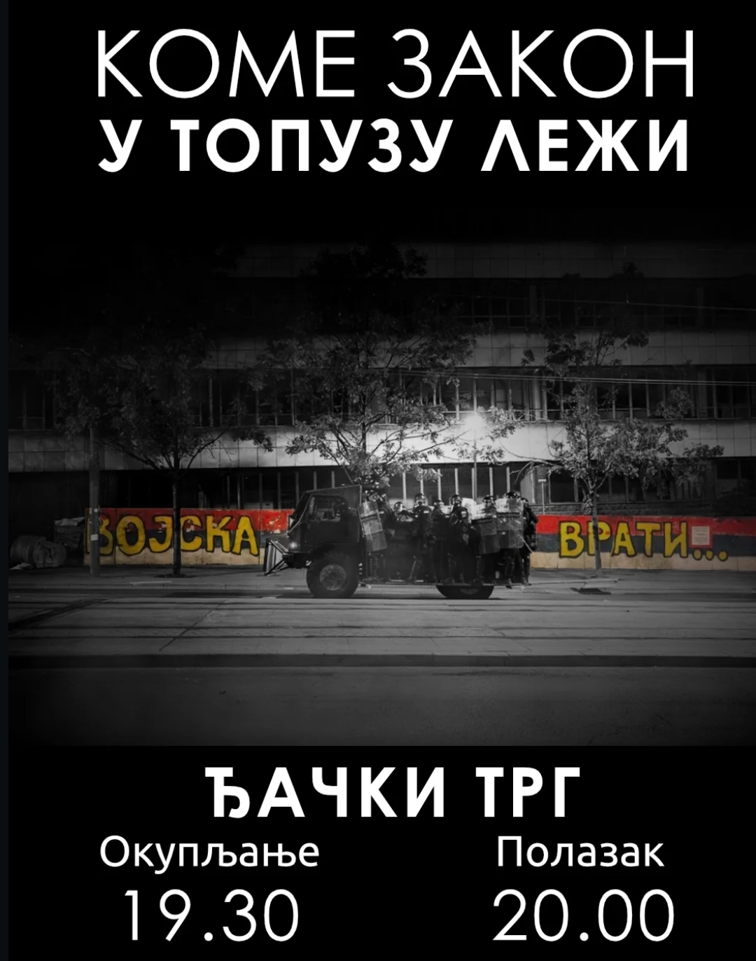 I pozivaju na okupljanje u 19 sati na Đačkom trgu, uz poruku: