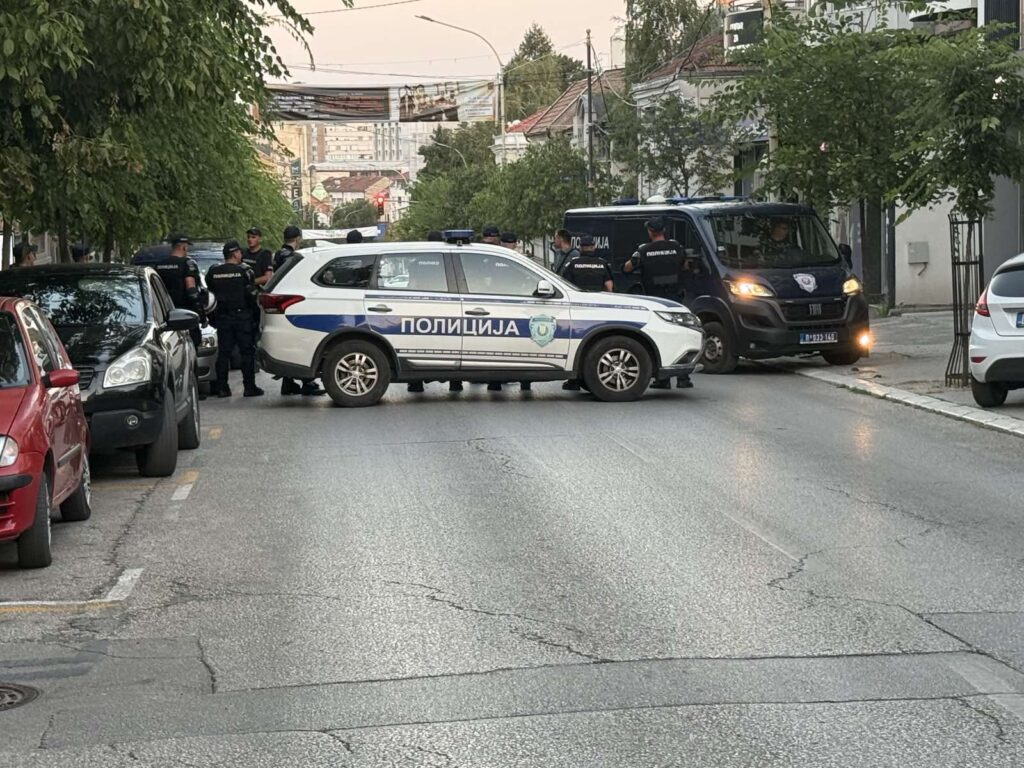 Glavna ulica je blokirana, uz prisustvo velikog broja policije.