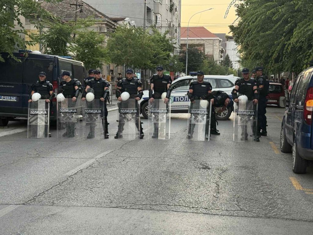 Jedna grupa je iz pravca Tanaska Rajića prišla do ograde gde su dovikivali SNS pristalicama „Aco Šiptare“, dok su im oni uzvratili sa „Aco Srbine“.