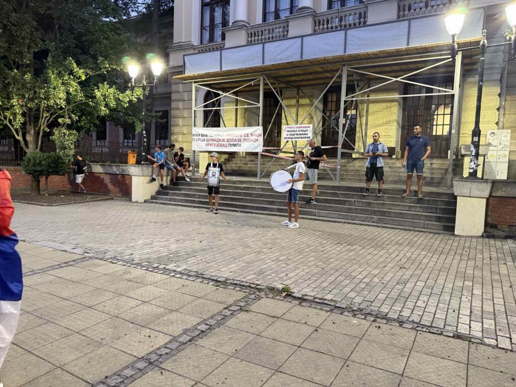 Na poziv studenata i zborova Kragujevčani se okupljaju u 20 sati na Đačkom trgu u znak podrške Vrbasu i Bačkoj Palanci, a aktivisti Srpske napredne stranke uz dva velika zvučnika su se već okupili ispred prostoja u Glavnoj ulici koja je blokirana za saobraćaj.