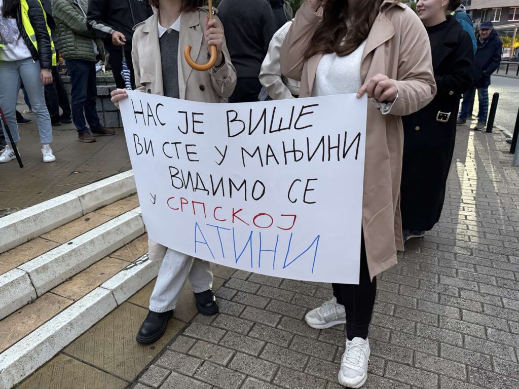 Građani se polako skupljaju na Đačkom trgu. Kiša nije obeshrabrila građana da izađu na ulice, već su na ulicama sa kišobranima i jasnim porukama.