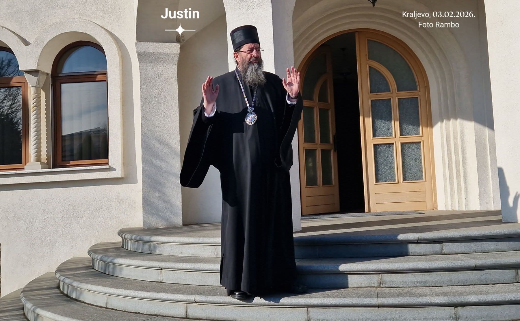 - Mitroplit žički je otvoreno podržao studentske proteste i otvorio vrata hramova onima koji su šetali za slobodu širom Srbije. Sveštenstvo manastira je izašlo i blagosoljalo tu decu na njihovom putu ka slobodi. Međutim, vrhu vlasti je zasmetalo što postoji slobodan episkop. Ovi isti ,,kontolori“ su već dolazili ovde i ništa nisu pronašli u smislu da se naš mitropolit ogrešio ni o crkvu, ni o veru, ni o narod, kaže Veljković.
