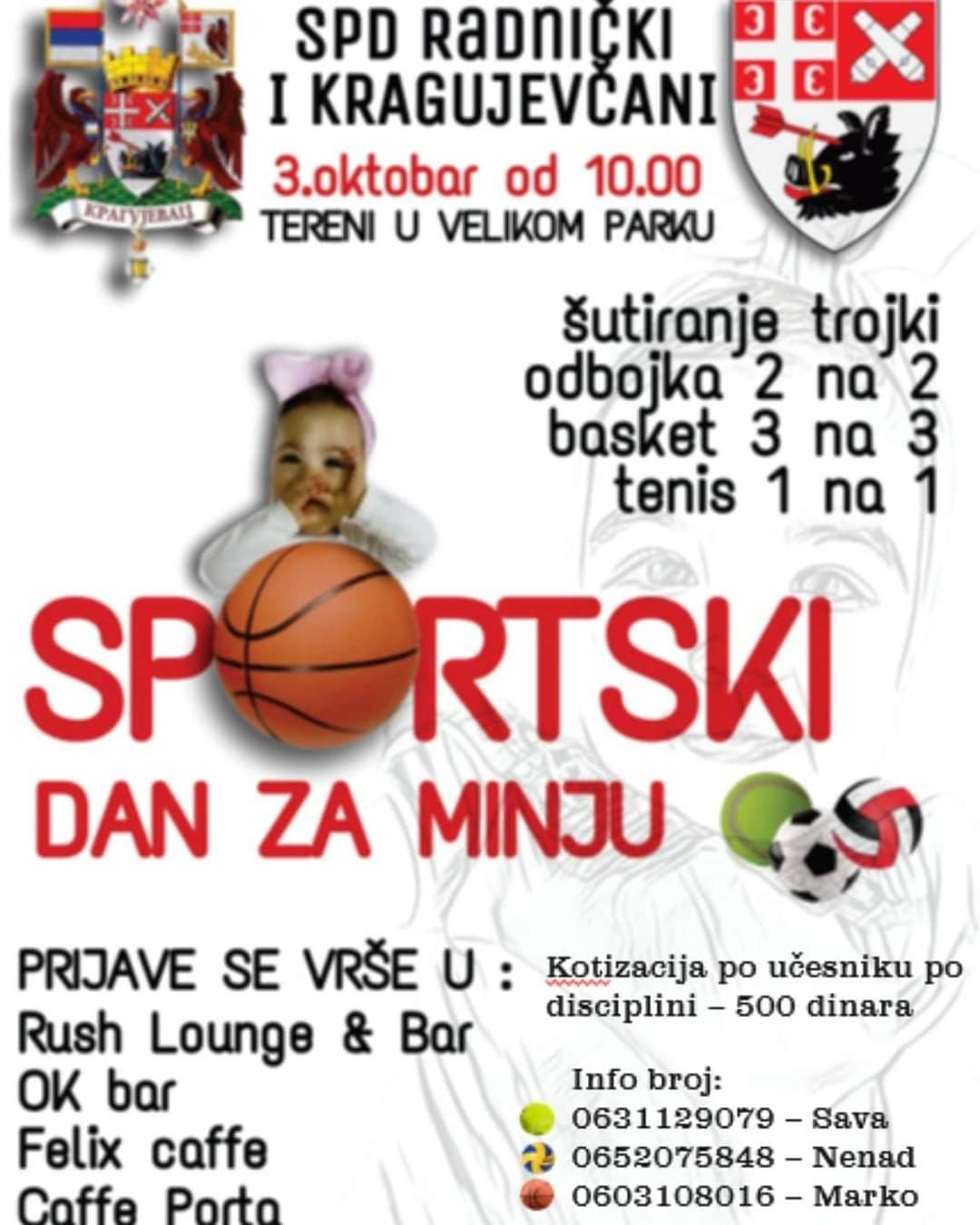 U saradnji sa SPD Radnički, u Kragujevcu se za vikend organizuje Sportski dan za Minju na terenima u Velikom parku 03.10. sa početkom u 10h.