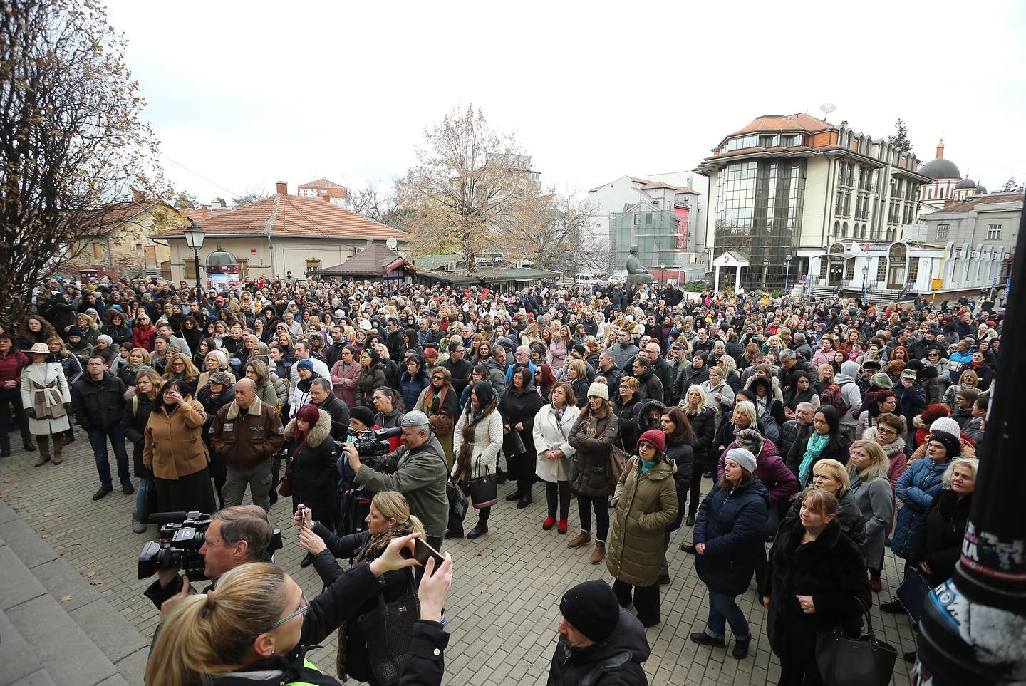 Nije bilo odavno protesta u Kragujevcu za koji je đački trg ispred Prve kragujevačke gimnazije bio tesan, kao što je to bilo danas na protestu prosvetnih radnika. Na poziv da kažu „Stop nasilju u školama“ odazvale sve škole – 28 je potpuno potpuno obustavilo nastavu, u pet je radilo jedan do pet nastavnika, dok su u dve škole časovi skraćeni na 30 minuta.