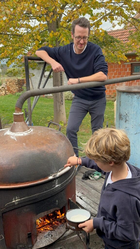 Lepo vreme iskoristio je za porodičnu aktivnost, želeći da pokaže sinu princu Stefanu kako se čuva i prenosi srpska tradicija. U objavi na društvenim mrežama, koja je ubrzo postala viralna, princ Filip je podelio fotografije iz procesa pripreme kazana, uz opis: