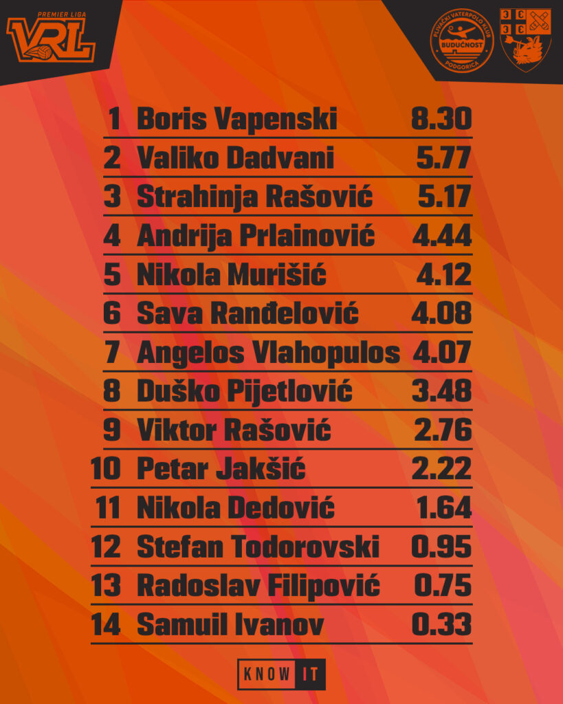 Strahinja Rašović 5,17 (šut 3/3, 2 asistencije)