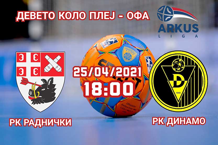 Rukometaši Radničkog nastavljaju plej-of trku u nedelju 25. aprila, kada će u svojoj SBB hali Jezero ugostiti ekipu Dinama iz Pančeva u okviru 9. kola i pokušati da im se revanširaju za poraz u drugom kolu doigravanja Arkus lige. Pančevci su u tom susretu slavili rezultatom 38:30.
