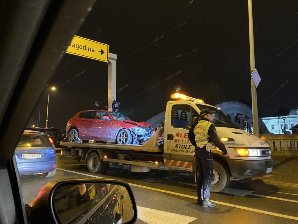 Na raskrsnici kod Kamenog mosta večeras je, javljaju čitaoci Glasa Šumadije, došlo do saobraćajne nezgode u kojoj je učestvovalo i policijsko vozilo.