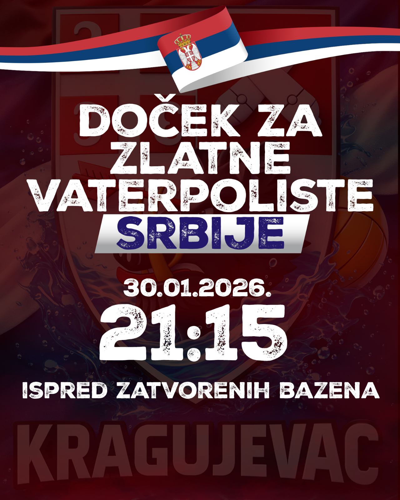 Doček zlatnih vaterpolista ispred zatvorenih bazena u Kragujevcu