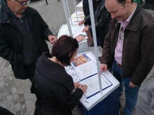Potpisivanje „Sporazuma s narodom“ traje danas do 14 sati kod hotela Zelengora u centru Kragujevca. Biće nastavljeno i narednih dana na javnim mestima, kao i u prostorijama stranaka iz Saveza za Srbiju u Kragujevcu.