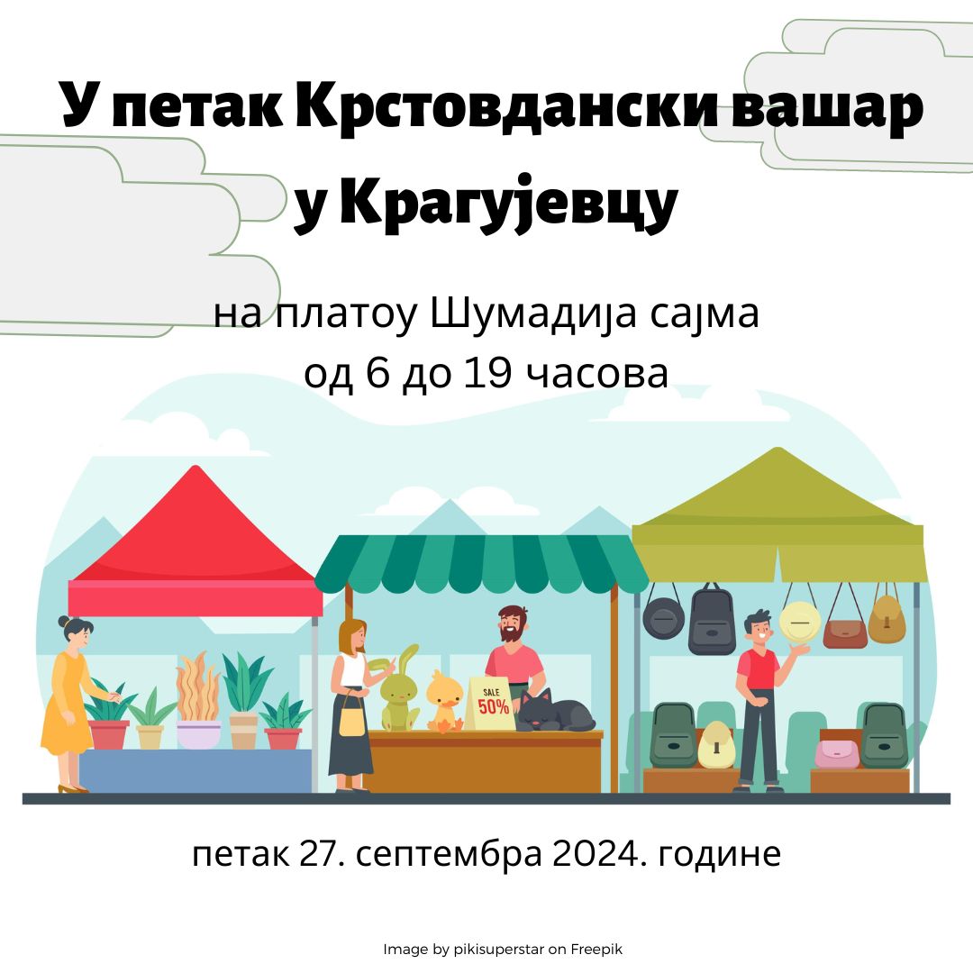 Tradicionalni Krstovdanski vašar biće održan u petak 27. septembra 2024. godine, na platou Šumadija sajma, od 6 do 19 časova.